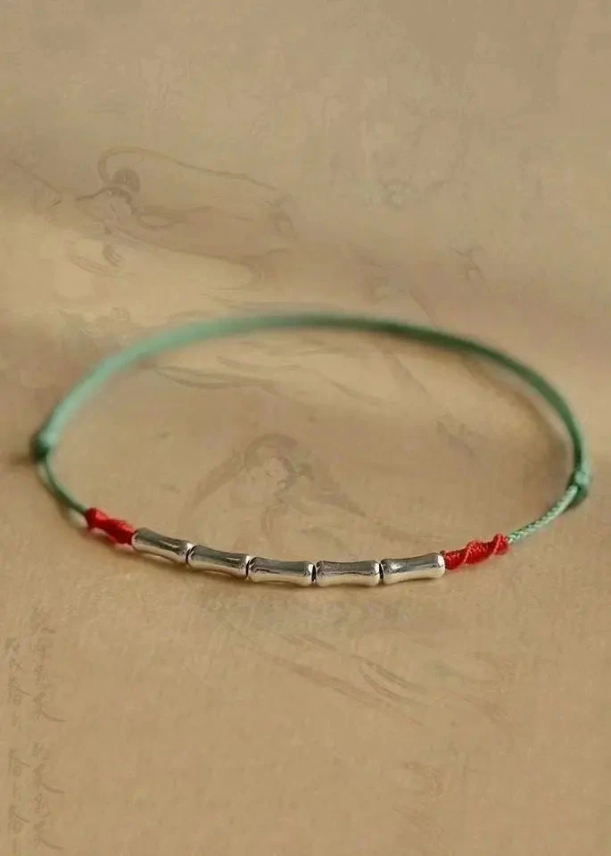 Handwoven Bamboo Joint Silver Good Luck Bracelet