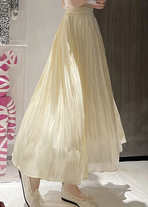 Italian Apricot High Waist Wrinkled Silk Skirts Spring QQ1008