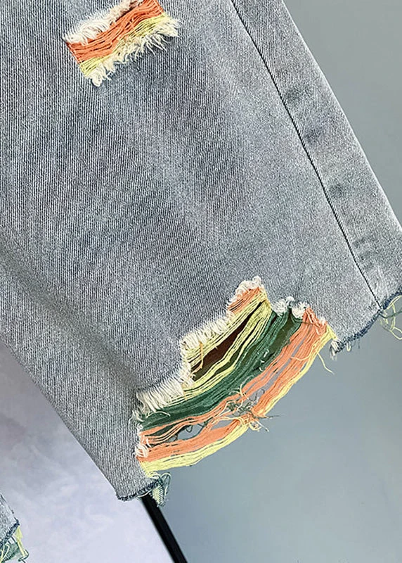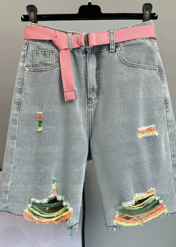 Italian Blue Pockets Sashes Hole Half Jeans Summer