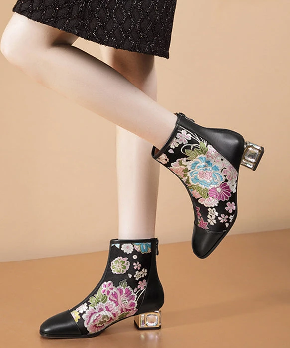 Discover the luxurious Jacquard Black Zippered Zircon Cowhide Leather Chunky Boots – a sophisticated and exclusive addition to your wardrobe. These boots exude elegance and style, featuring intricate jacquard patterns and a chunky zipper for a touch of edginess. Crafted from high-quality cowhide leather, these boots are a true statement piece that will elevate any outfit. Step into a world of art and fashion with these must-have boots.