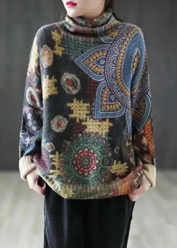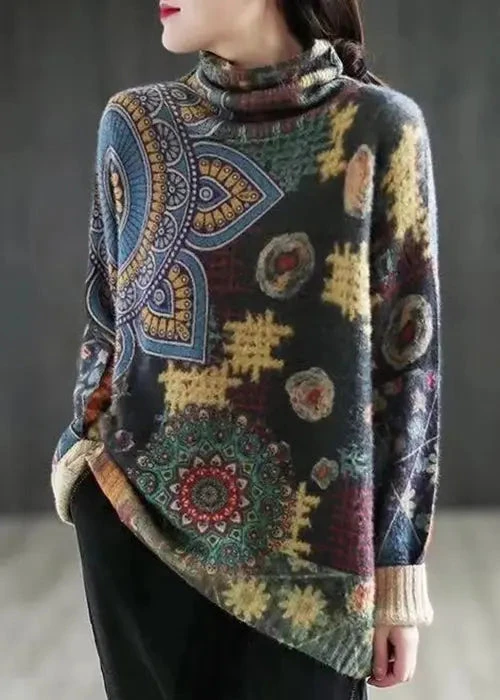 Be the first to review “Loose Dark Grey Turtleneck Print Patchwork Mink Hair Knitted Sweaters Fall ML3350” Cancel reply