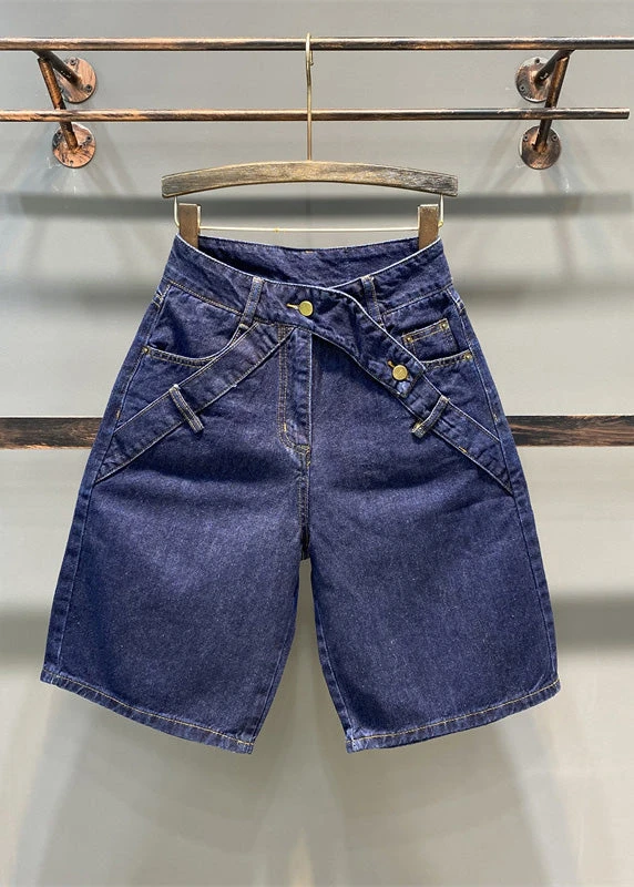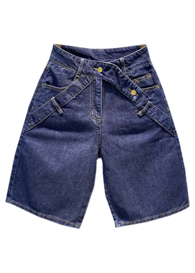 Loose Navy Pockets Patchwork Button Half Straight Pants TY1063