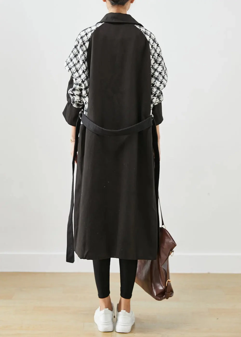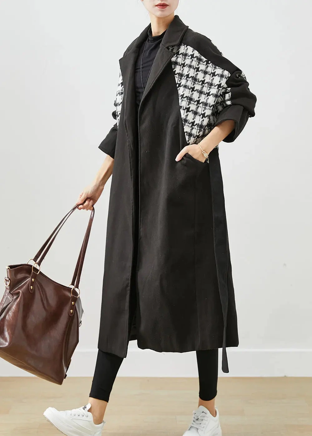 Modern Black Thick Patchwork Plaid Woolen Coat Outwear Fall
