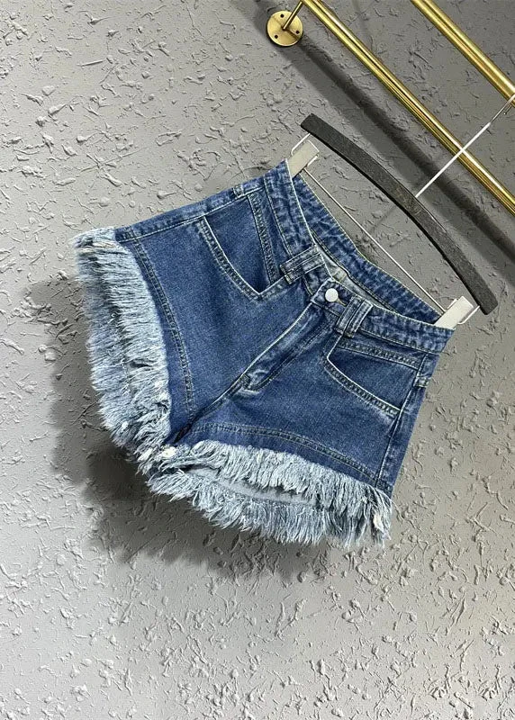Modern Denim Blue Pockets Patchwork Shorts Summer