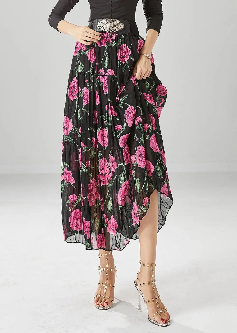 Natural Black Print Exra Large Hem Chiffon Pleated Skirts Fall