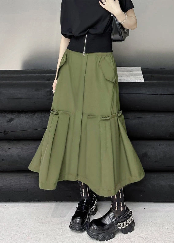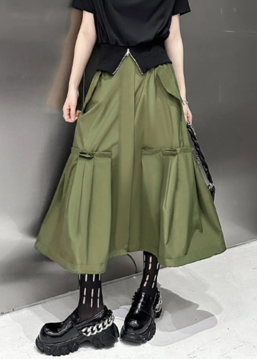 New Army Green Pockets High Waist Patchwork Cotton A Line Skirts Fall