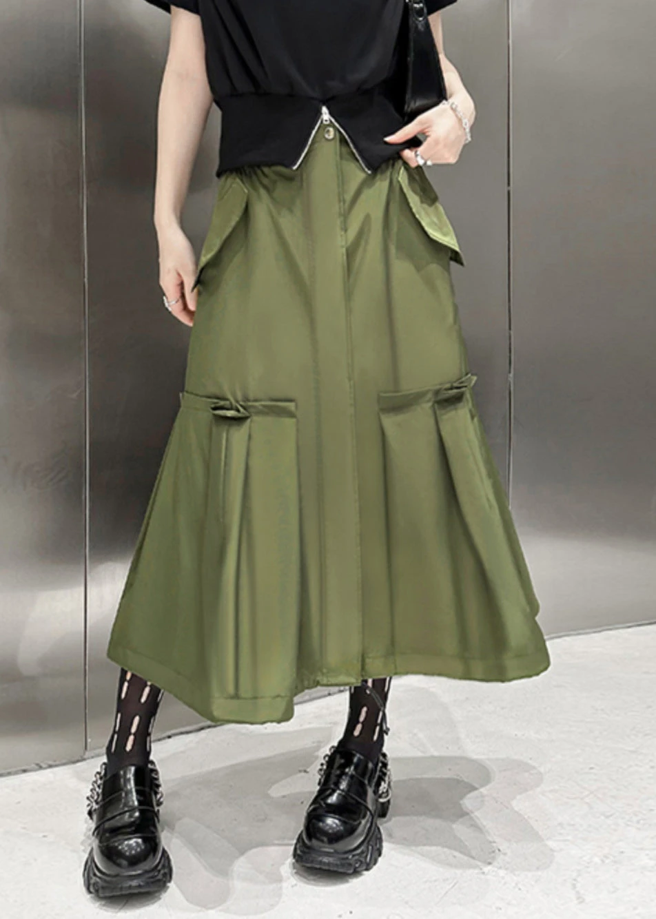 Be the first to review “New Army Green Pockets High Waist Patchwork Cotton A Line Skirts Fall LY9549” Cancel reply