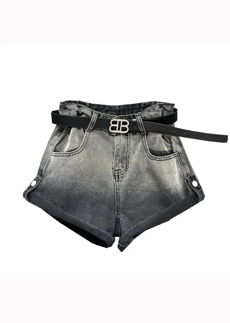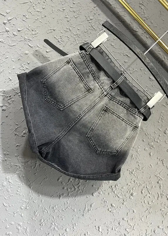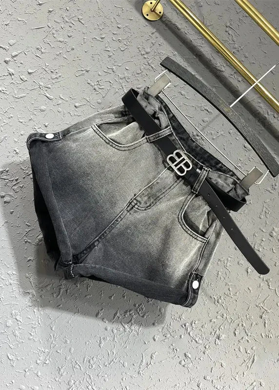 New Black Grey Gradient Design Pocket Panel Denim Shorts Autumn