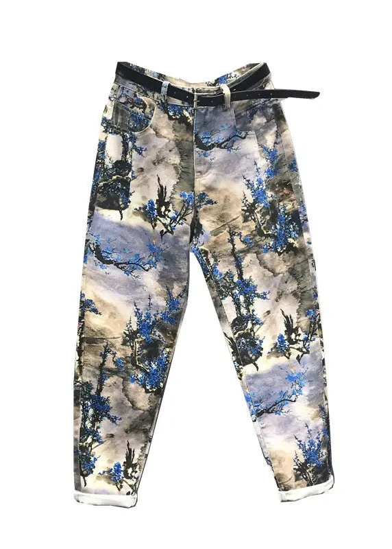 New Chinese Feng Shui Ink Printed Versatile Jeans Autumn
