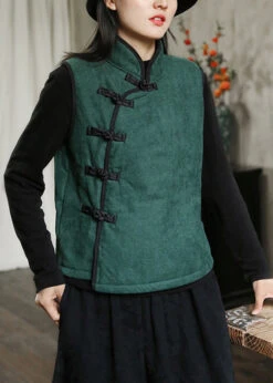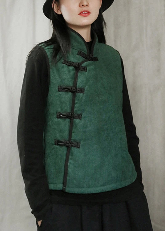 New Green Stand Collar Button Warm Fleece Waistcoat Sleeveless