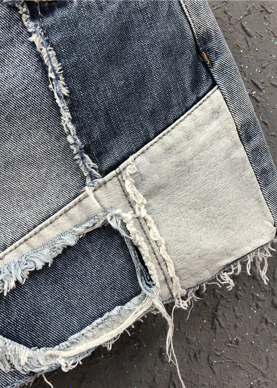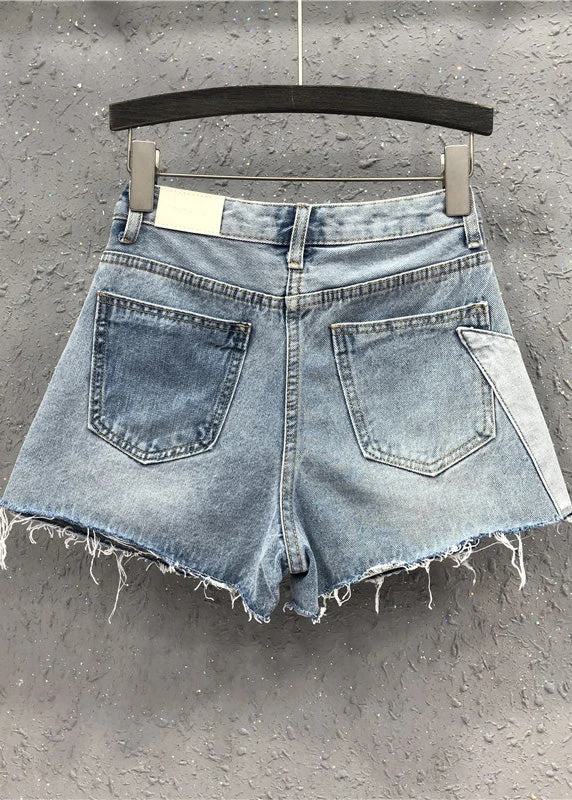 Novelty Blue Asymmetrical Patchwork High Waist Denim Shorts Summer TY1068