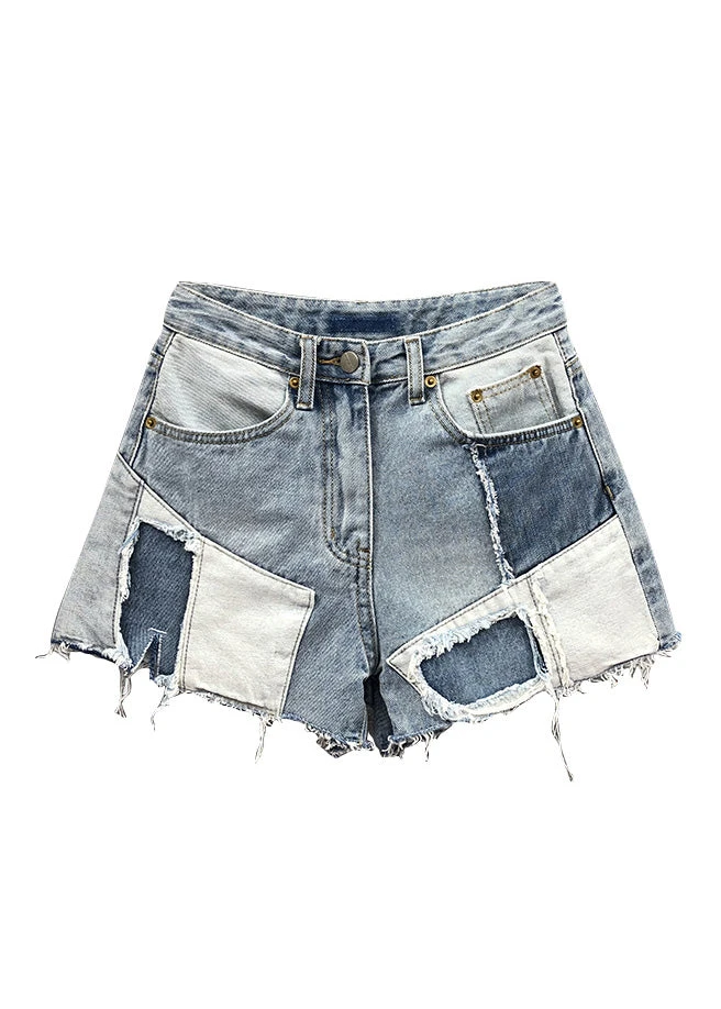 Novelty Blue Asymmetrical Patchwork High Waist Denim Shorts Summer