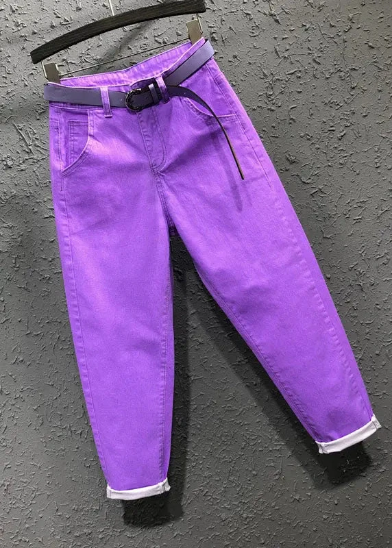 Novelty Purple Pockets Patchwork Sashes Crop Pants Fall ML0764