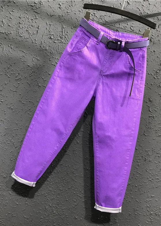 Novelty Purple Pockets Patchwork Sashes Crop Pants Fall