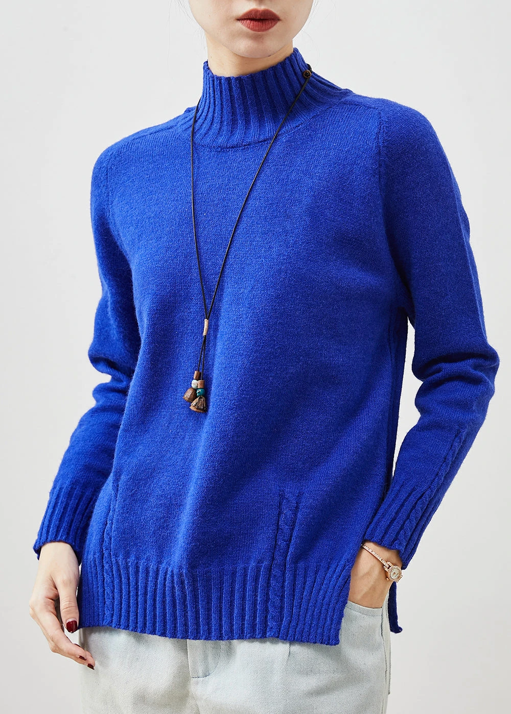 SKU: ZMFID 9368249237814 Categories: Sweaters and Jumpers, Winter Outfits Tags: 2024new, Gao, Organic Blue High Neck Side Open Knit Sweater Spring, SO202405