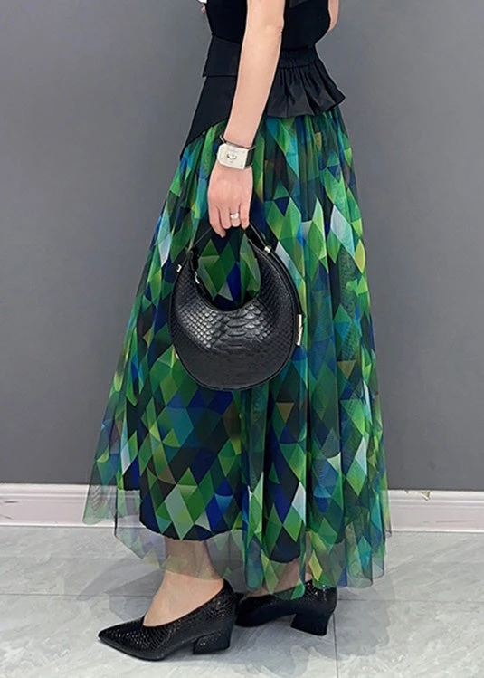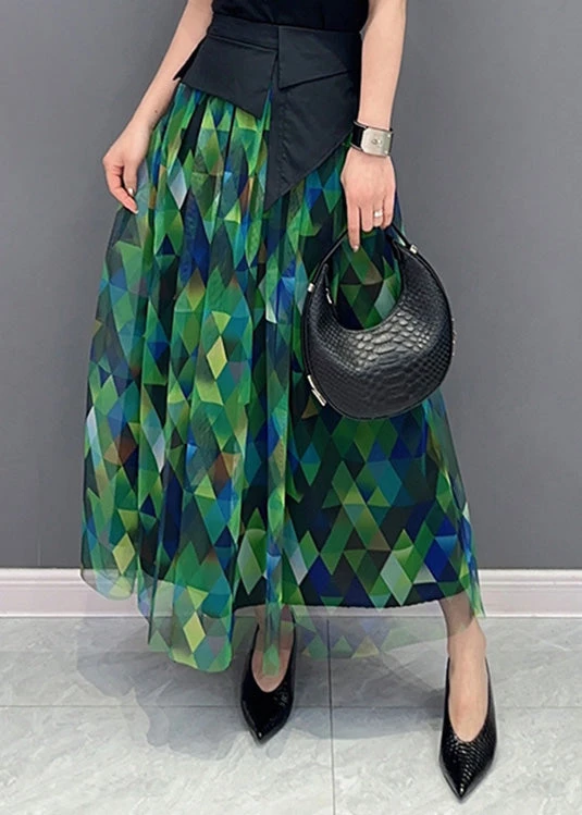 Plus Size Green Print Patchwork High Waist Tulle Skirts