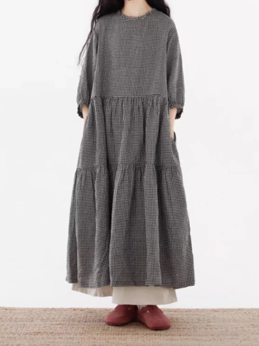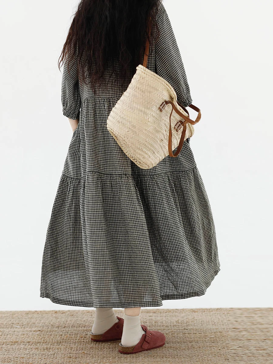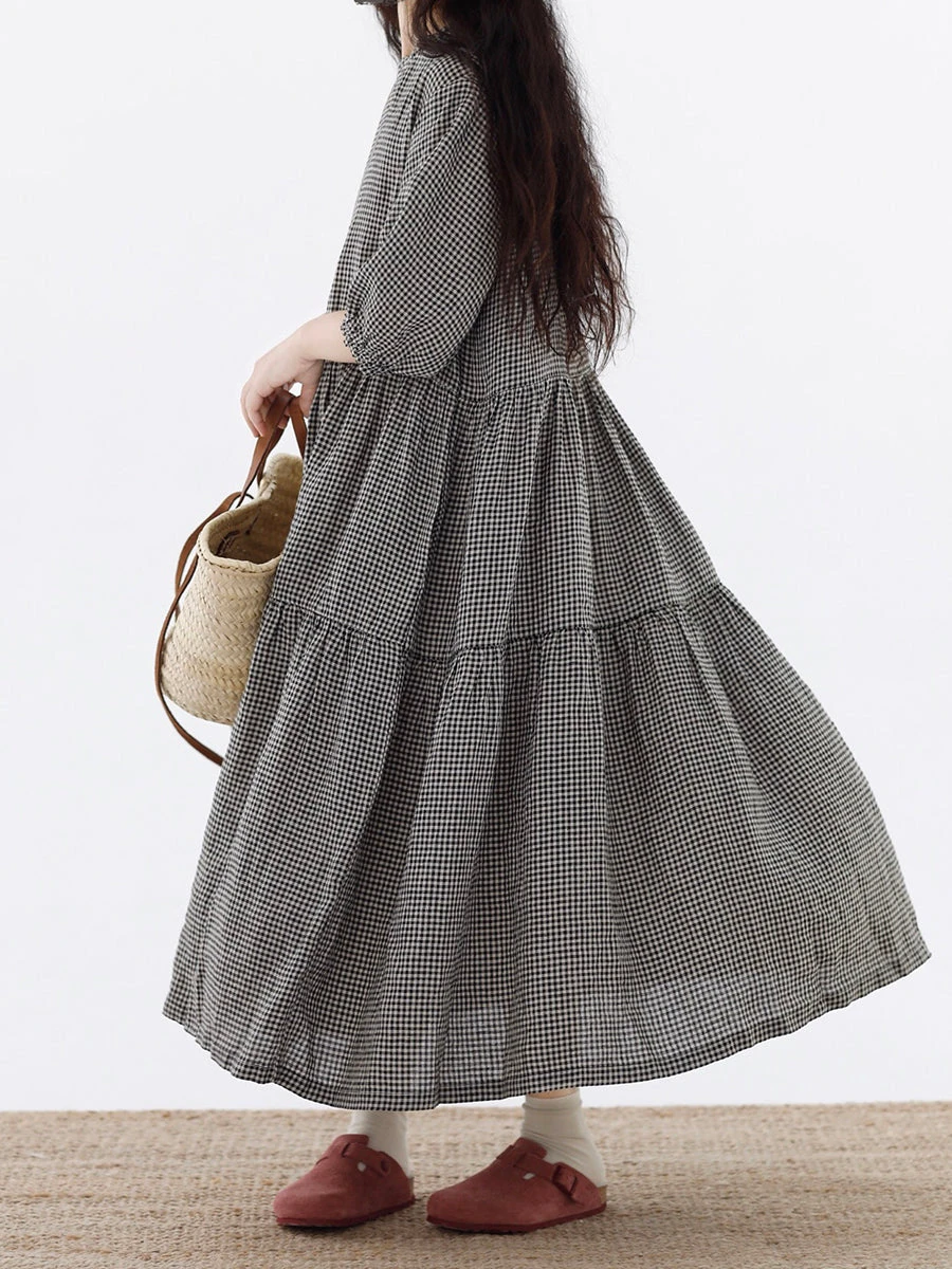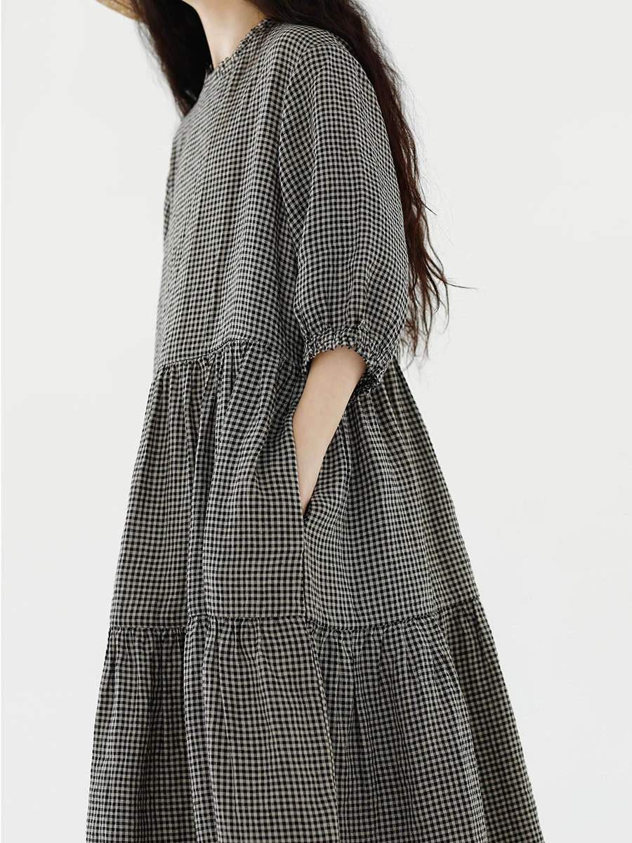 Indulge in the elegant luxury of our Plus Size Women Artsy Plaid Spliced Dress, expertly crafted from 100% premium cotton. Embrace a classic plaid pattern and an O-neck collar, adorned with delicate half sleeves and a regular artsy sleeve style. Perfect for the spring and summer seasons, this dress exudes sophistication and exclusive style.