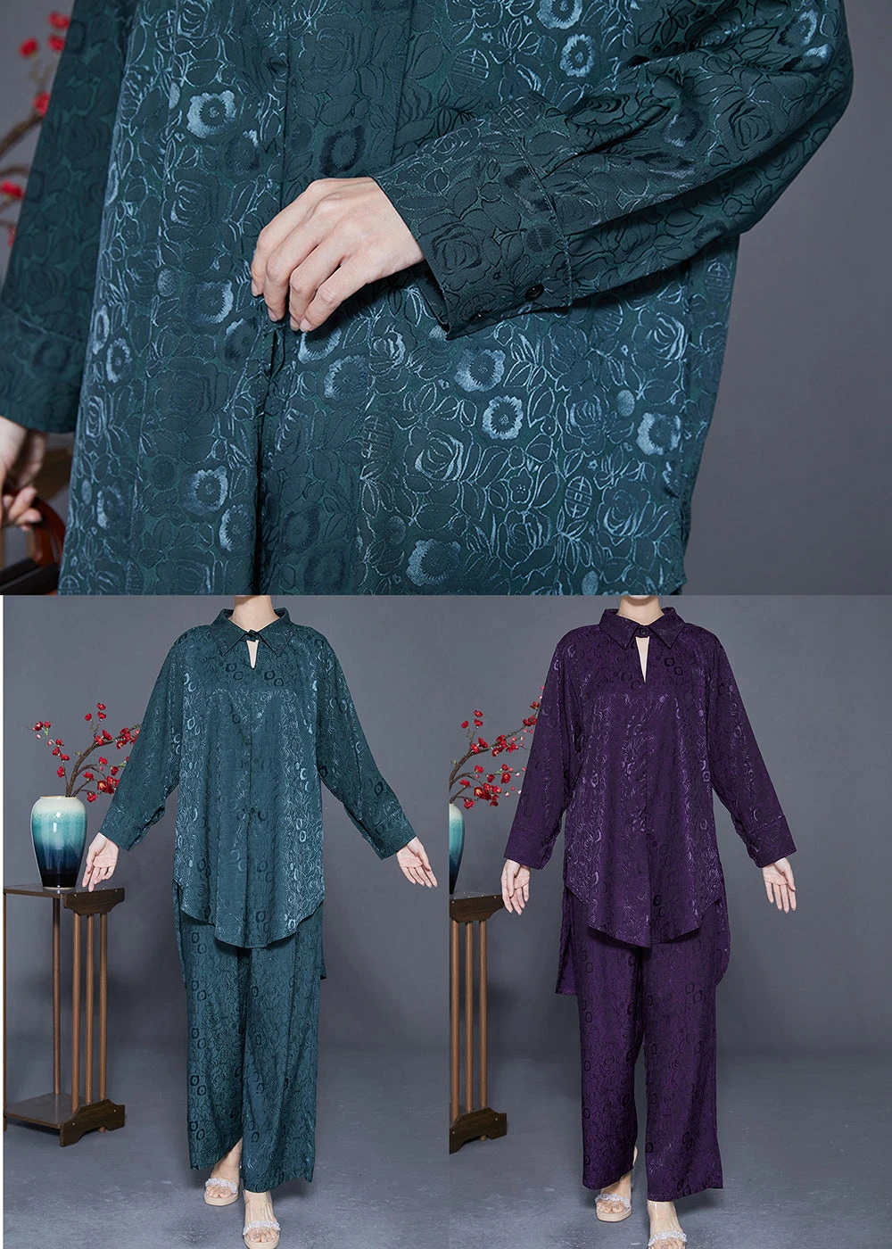 Be the first to review “Purple Silk Two Piece Set Peter Pan Collar Low High Design Spring LY3623” Cancel reply