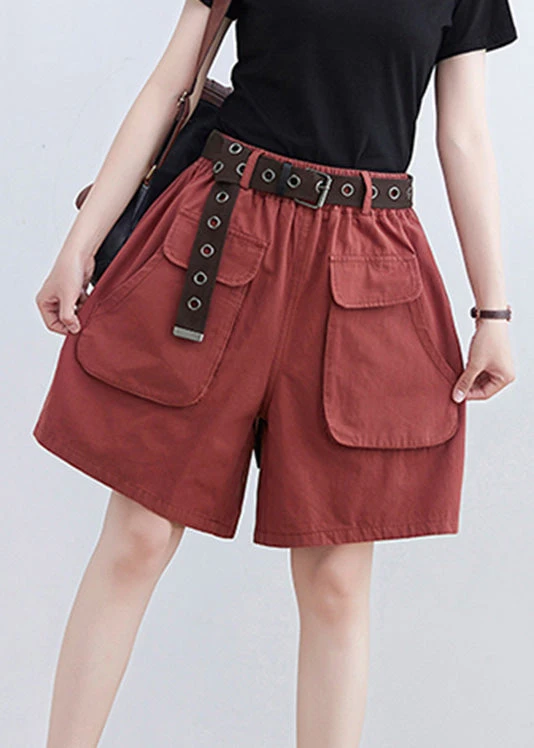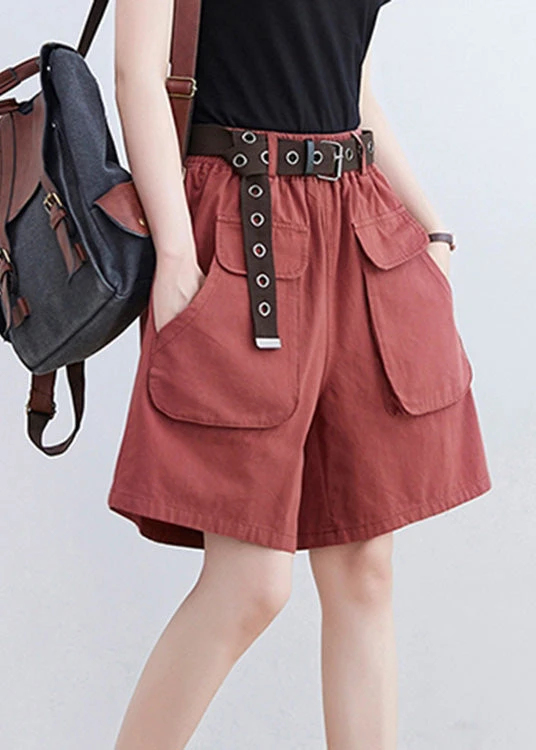 Red Pockets Elastic Waist Wide Leg Shorts LY6029