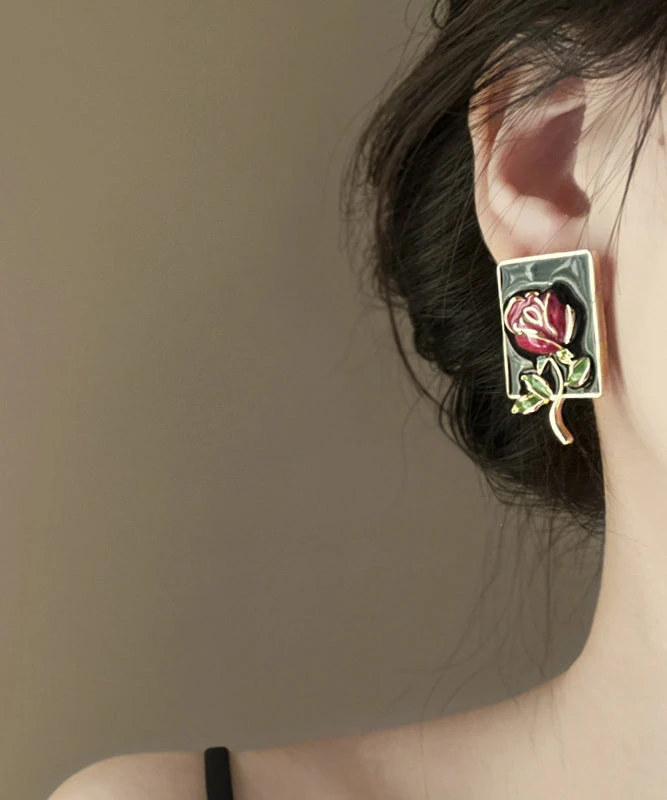 Regular Gold Sterling Silver Overgild Rose Drip Glaze Stud Earring KX1049