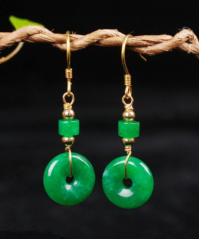 Regular Green Silver Overgild Jade Safety Buckle Drop Earrings