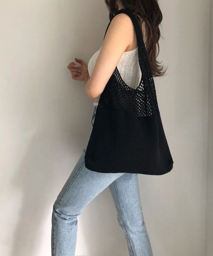 Retro Coffee Hollow Out Cotton Satchel Bag Handbag