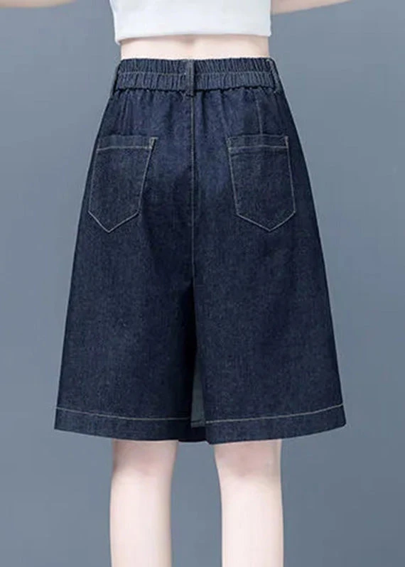 Retro Navy Patchwork High Waist Solid Half Jeans TY1066