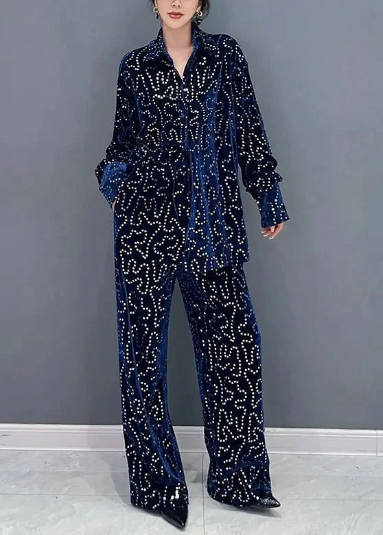 Sequins Tops And Pants Velour Two Piece Set Fall