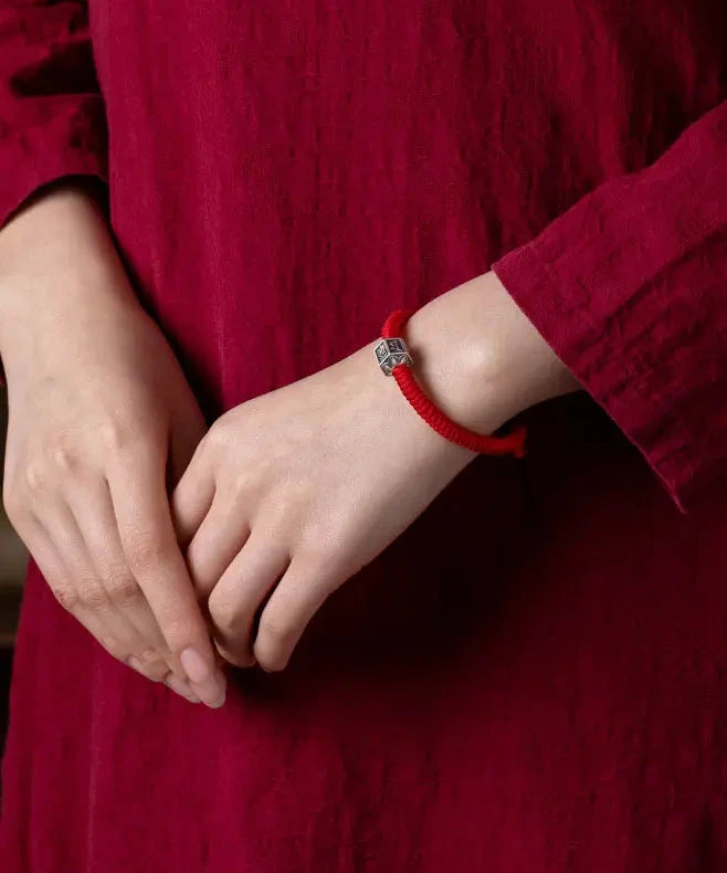 Simple Red Hand Knitting Six Characters Bucket Bead Bracelet