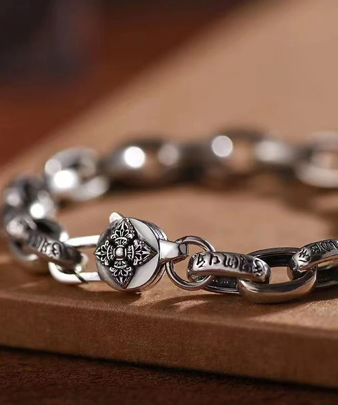 Simple Silk Copper Silvering Carving Chain Bracelet