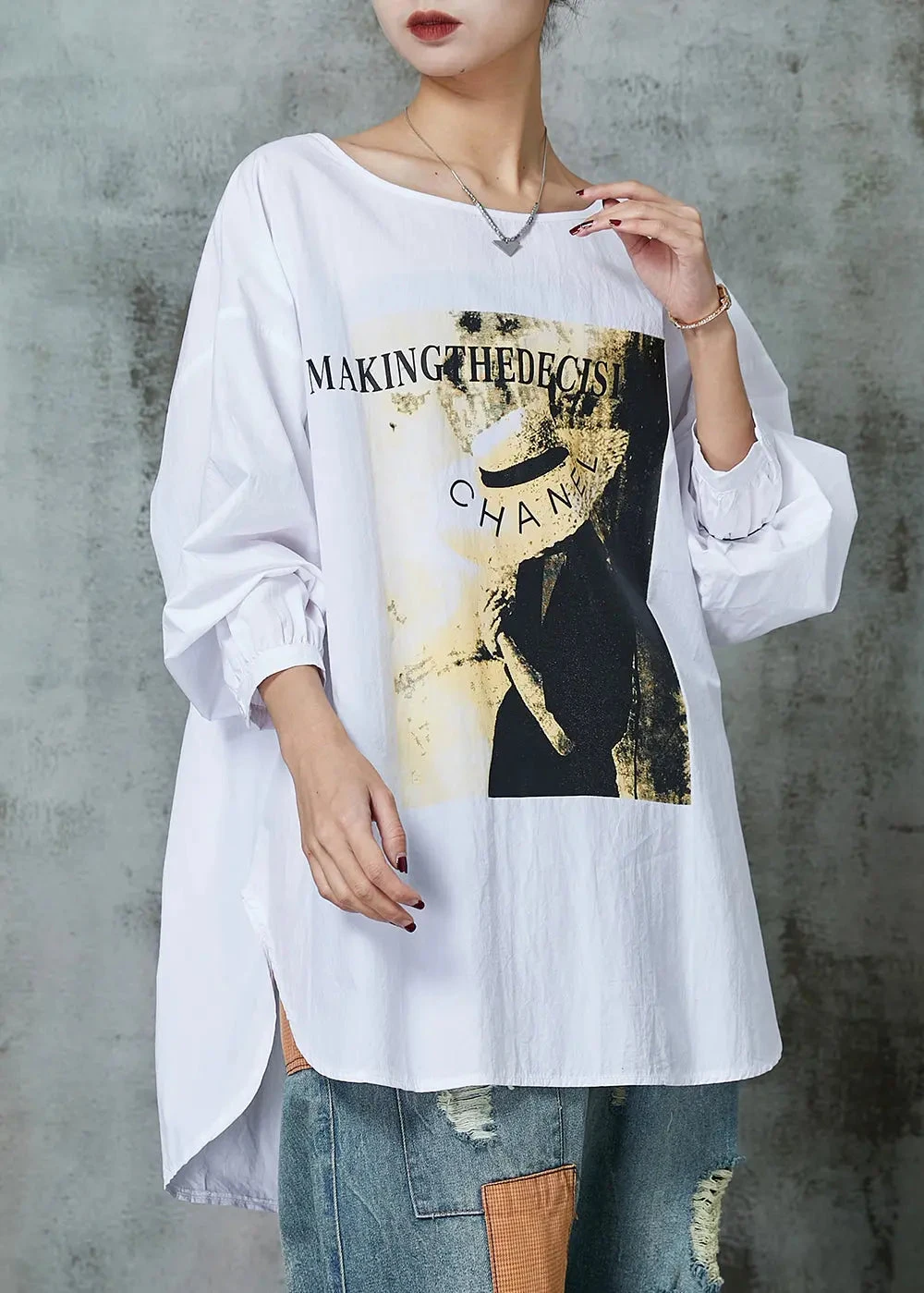 Introducing our Simple White Oversized Print Cotton Blouses, a versatile and comfortable addition to your spring wardrobe. With its loose and relaxed fit, this blouse is perfect for any occasion. Made from high-quality cotton, it provides both style and comfort. Elevate your look with this must-have piece.