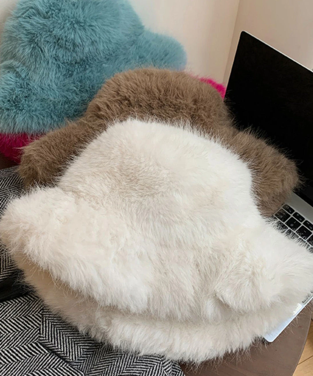 Simple White Warm Fleece Thick Solid Bucket Hat