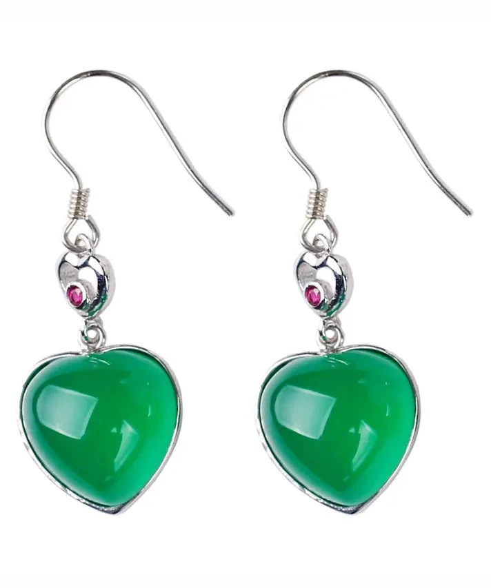 Sterling Silver Inlaid Love Chalcedony Drop Earrings