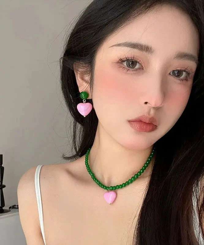 Style Green Pearl Alloy Pink Love Crystal Stud Earrings