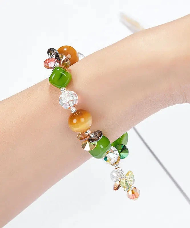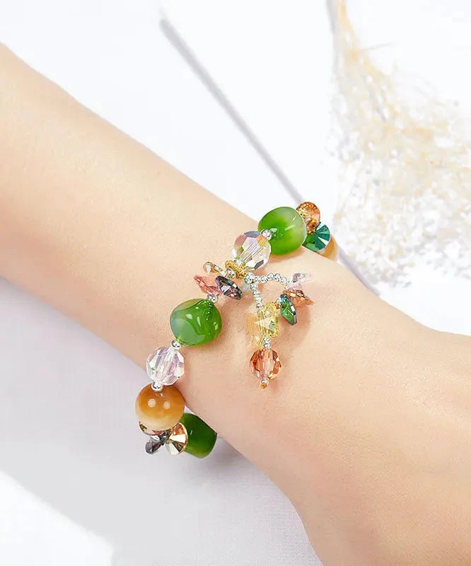 Stylish Avocado Green Crystal Agate Tiger’s Eye Charm Bracelet