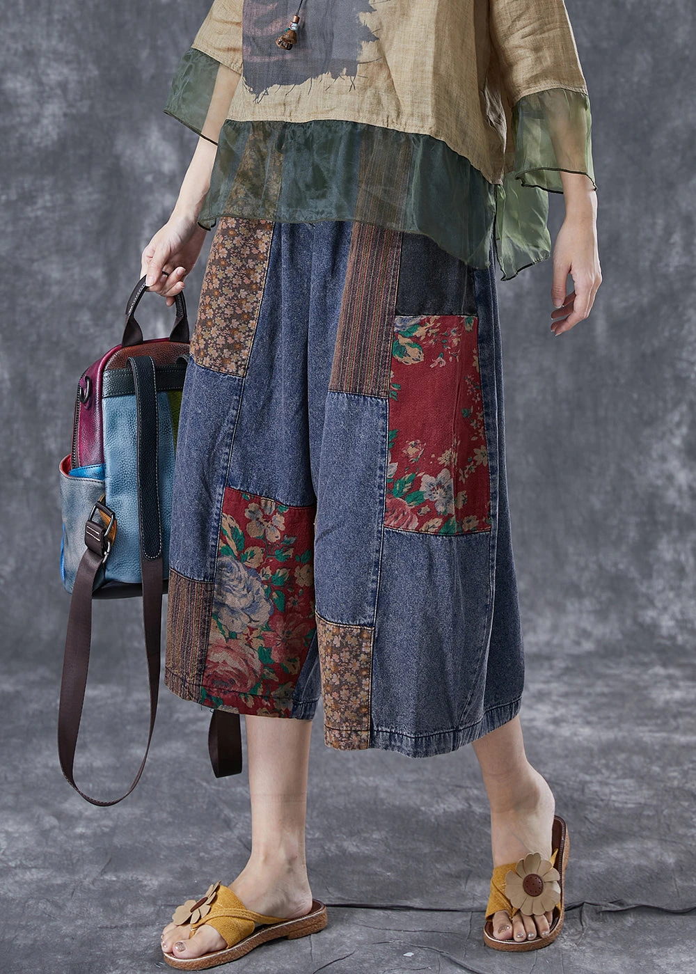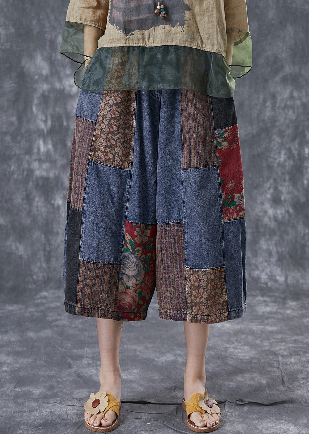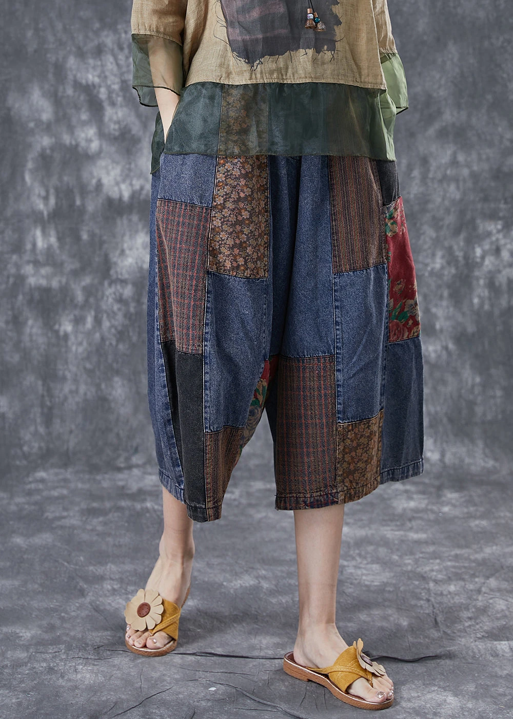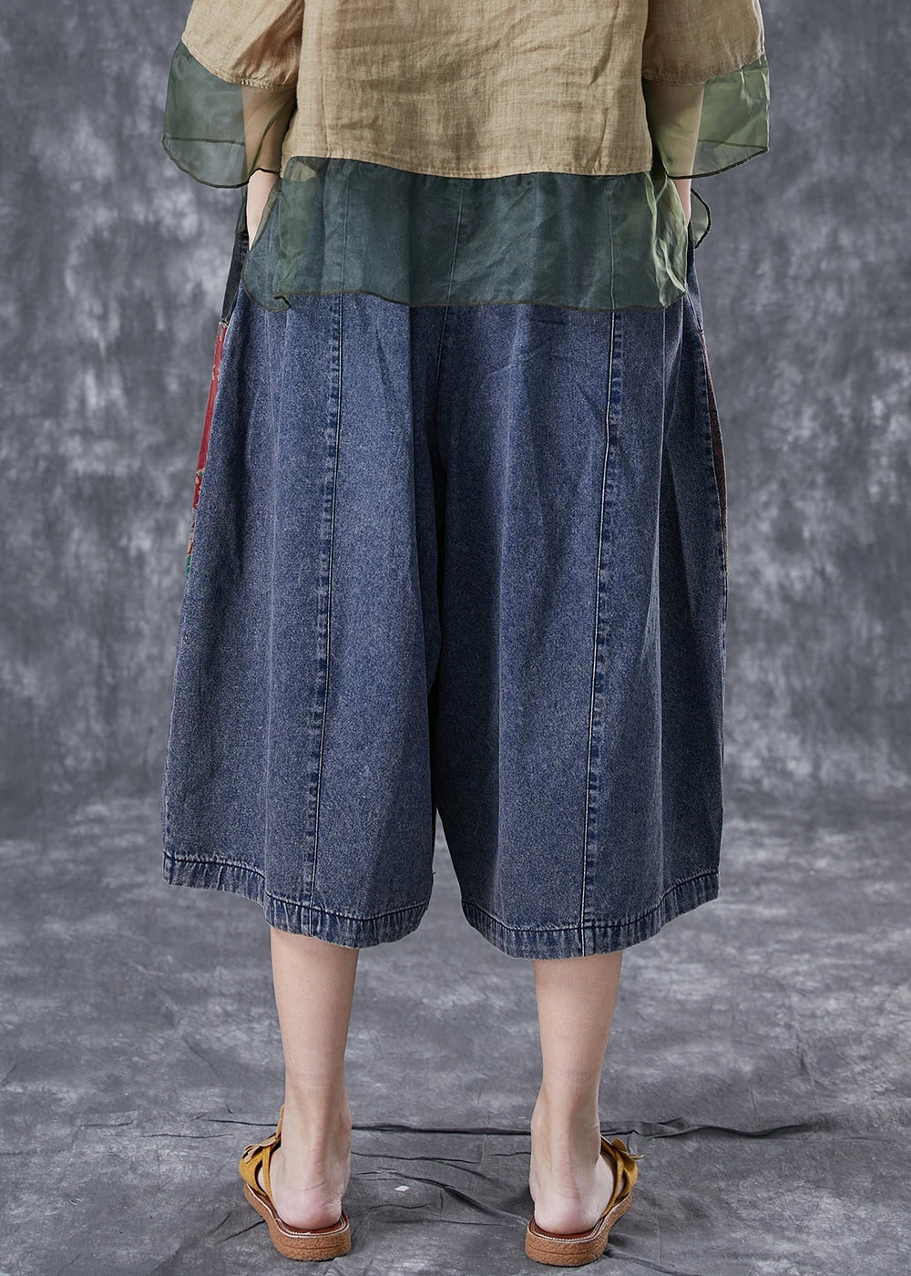Stylish Blue Oversized Patchwork Denim Crop Pants Summer