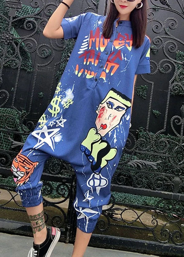 Be the first to review “Stylish Blue Stand Collar Print Button Patchwork Cotton Jumpsuits Summer LY3963” Cancel reply