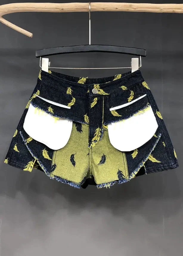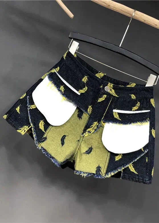 SKU: ZMFID 8965086052662 Categories: Bottoms, Shorts Tags: SO2023, SO202312, SO20231216, Stylish Navy Feathers Embroideried Patchwork Denim Shorts Summer