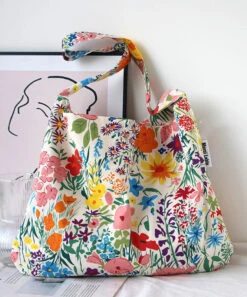 Summer Beige Print Large Capacity Canvas Satchel Bag Handbag