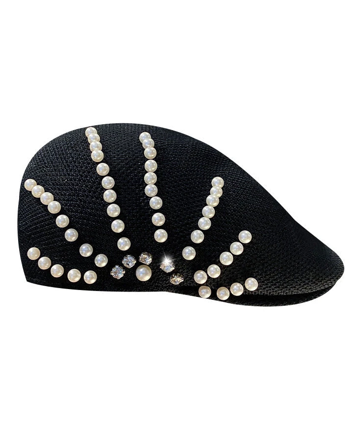 Summer Black Zircon Pearl Beret Hat