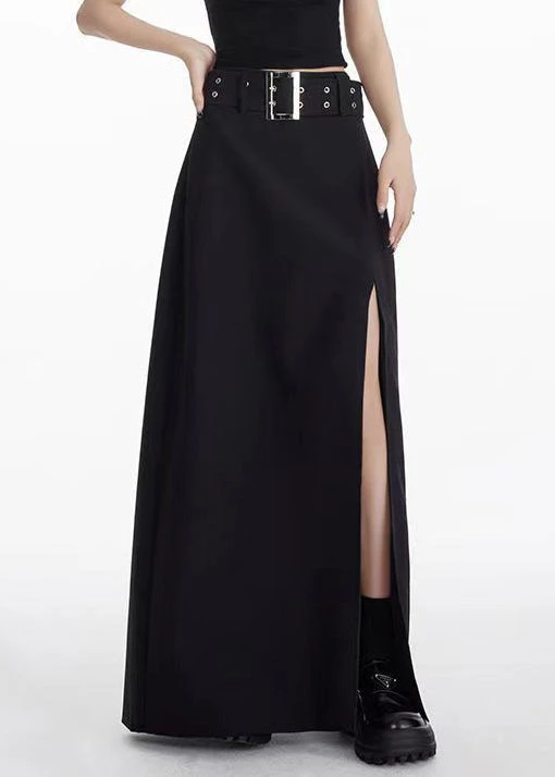 Unique Black Front Open High Waist Patchwork Spandex Maxi Skirts Summer