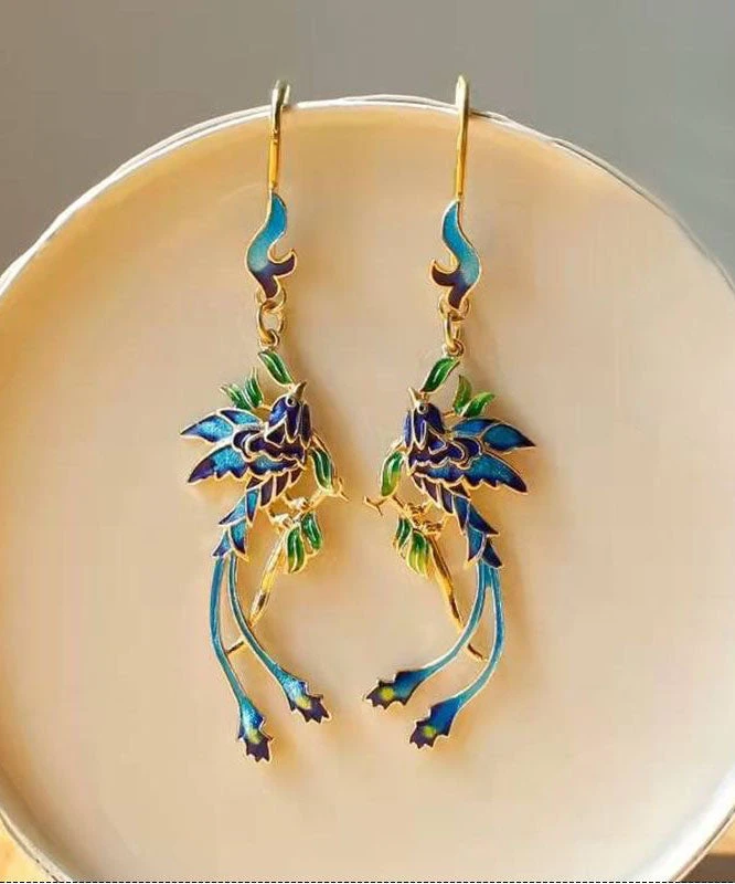 Unique Blue Sterling Silver Overgild Cloisonne Drop Earrings TW1025