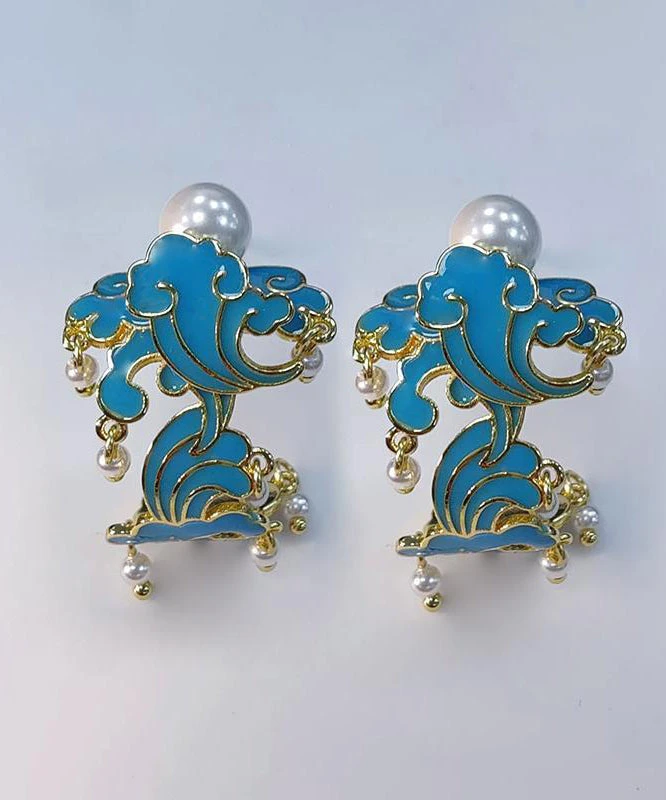 SKU: ZMFID 9352852734262 Category: Accessories Tags: Earrings, SO2024, SO20240429, Unique Blue Sterling Silver Overgild Enamel Pearl Tassel Hoop Earrings