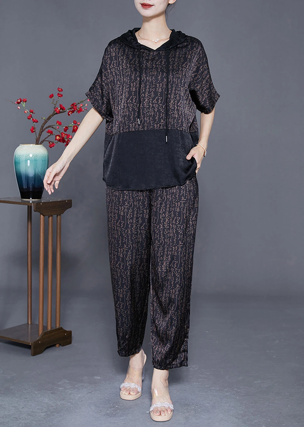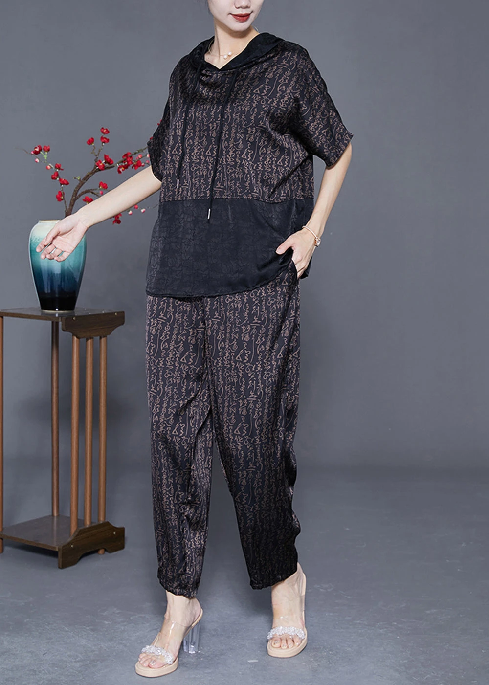Unique Chocolate Oversized Patchwork Print Silk Two Piece Set Women Clothing Summer