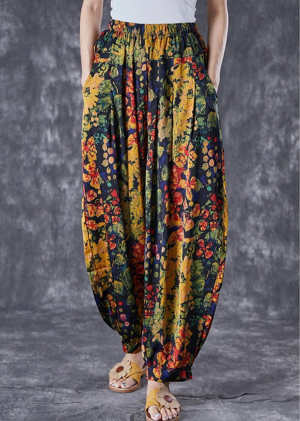 Unique Oversized Print Linen Silk Harem Pants Summer