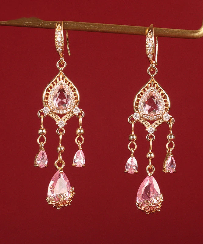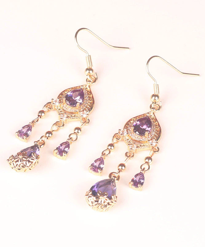 Unique Purple Sterling Silver Zircon Tassel Drop Earrings