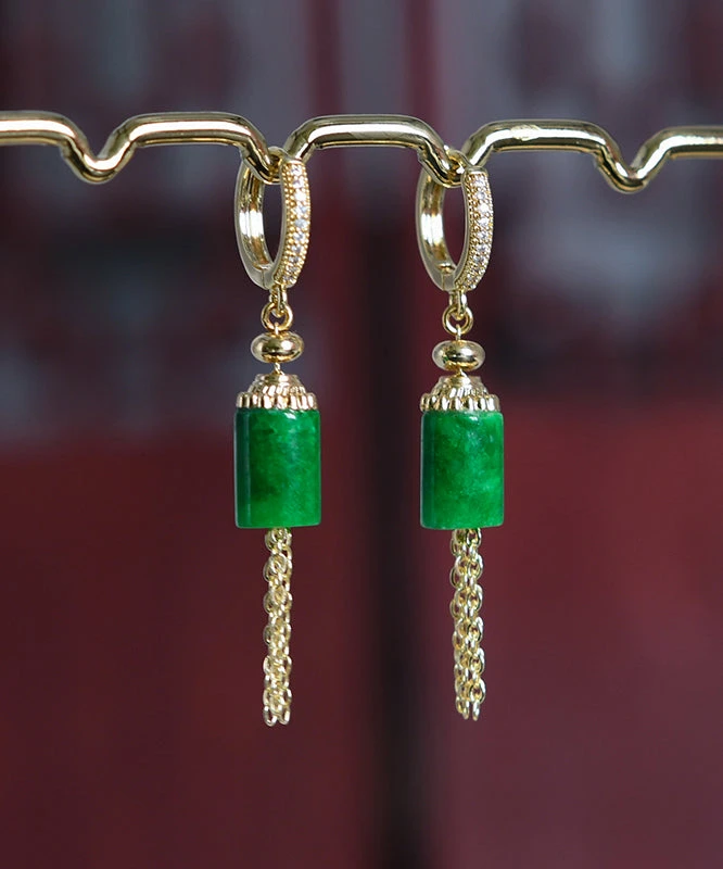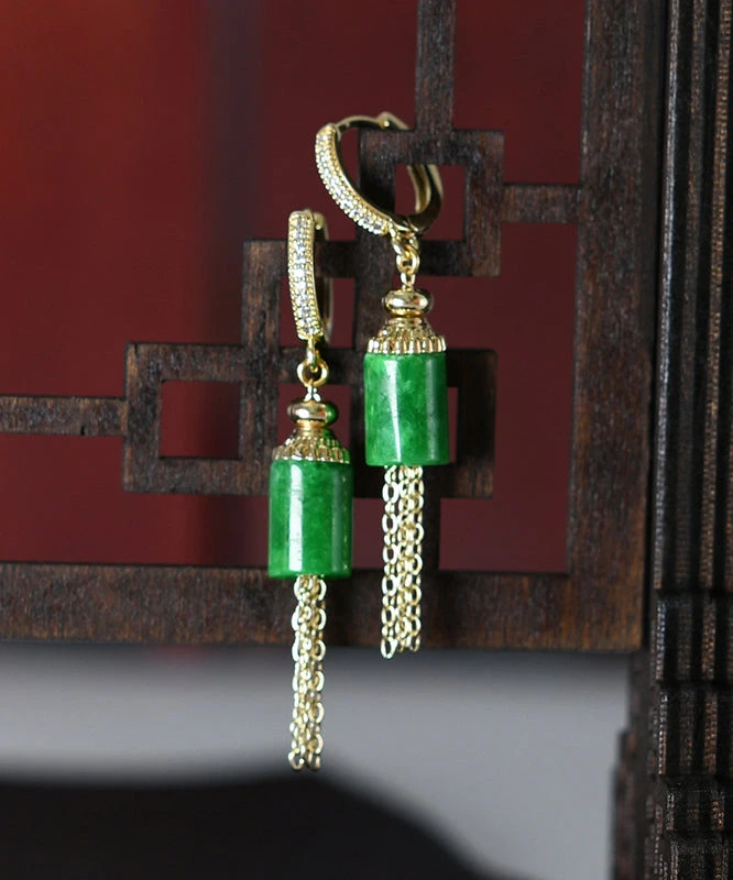 SKU: ZMFID 9332858618166 Category: Accessories Tags: 2024new, NEW, SO2024, Vintage Gold Sterling Silver Overgild Inlaid Jade Tassel Drop Earrings