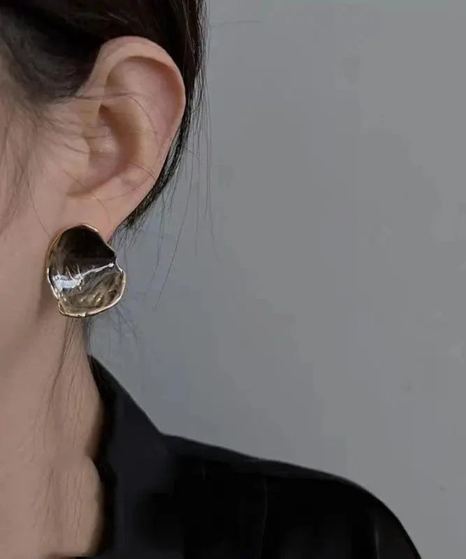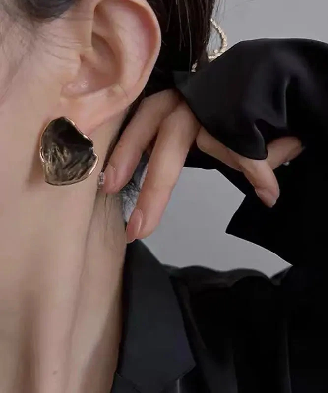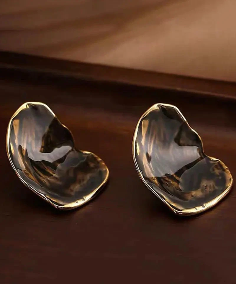 Vintage Grey Brown Copper Overgild Dropwise Glaze Stud Earrings