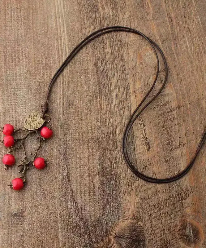 Vintage Red Hand Knitting Red Apple Vine Pendant Necklace ML0601