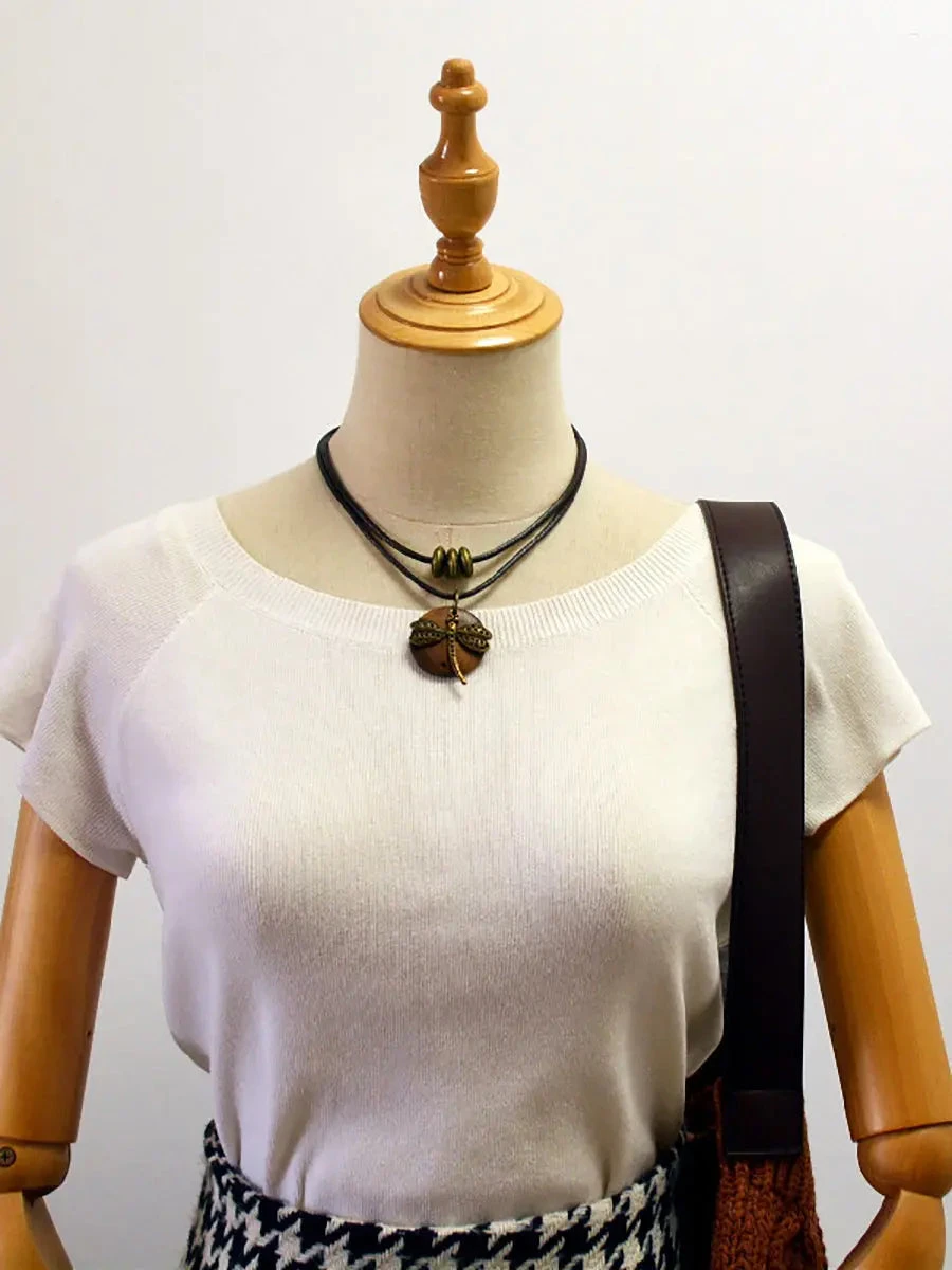 Embrace the whimsical energy of nature with our Women Alloy Dragonfly Wooden Necklace. This unique piece features a stunning dragonfly pendant made of wooden beads, adding a touch of earthy charm to any outfit. Elevate your style with this playful and one-of-a-kind accessory.